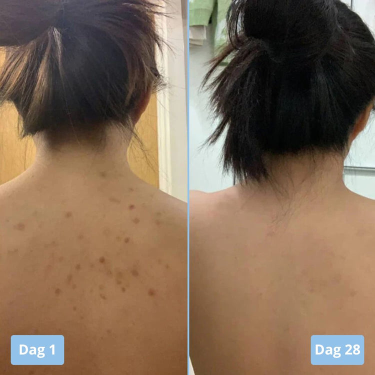 "Efter att ha använt den här produkten i en månad har min rygg helt förvandlats. Min hud är len, ren och aknefri. Jag är otroligt tacksam mot det här företaget."